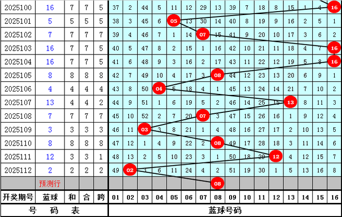 前9期开出8个蓝球号码,蓝球以冷码为主,热码蓝球开出相对较少,还没有出现的蓝球为:01、05、06、09、10、11、14、15,共8个,本期注意热码蓝球出现,一码蓝球参考08。
